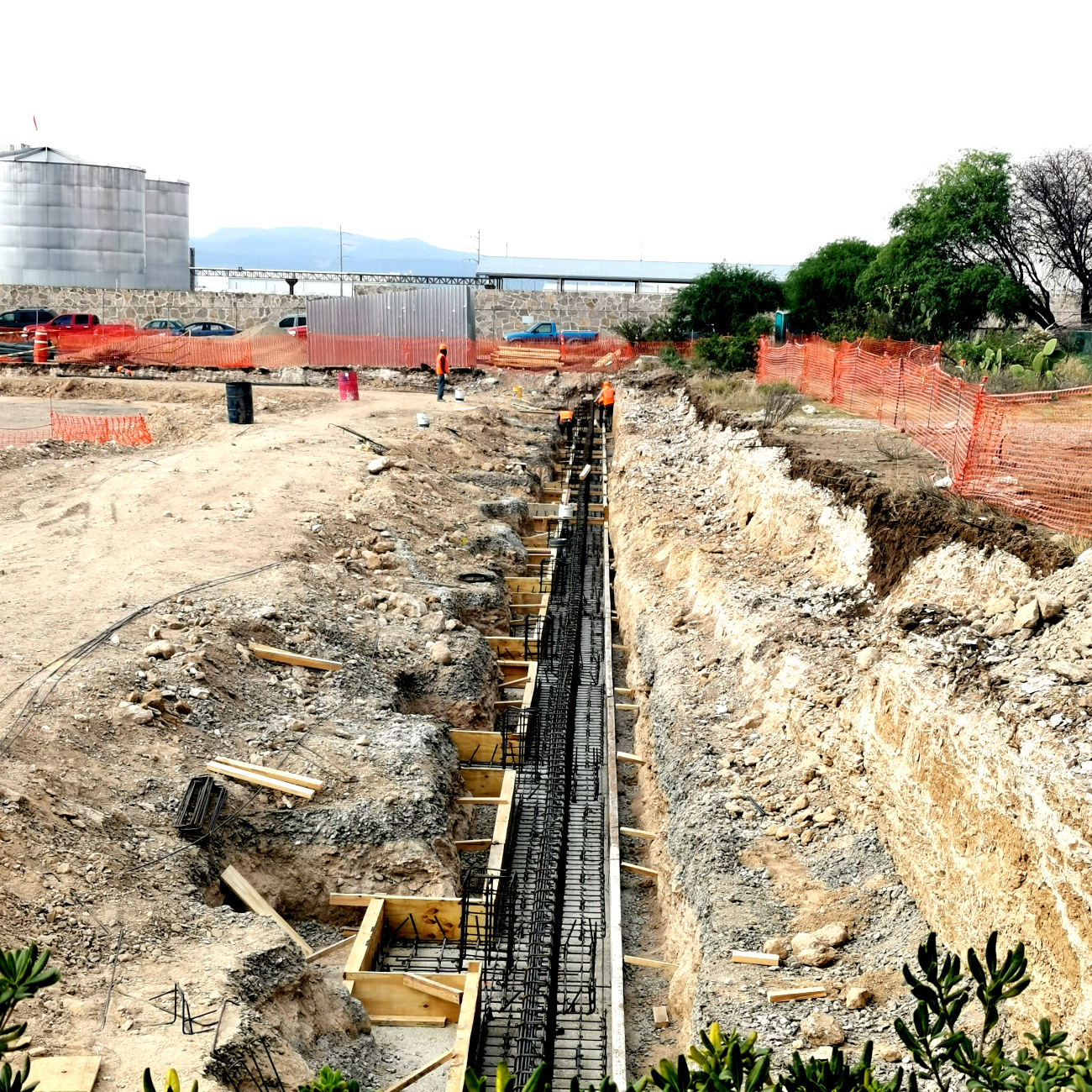 - Construcción de cimentación a base de zapatas aisladas y muros de contención perimetrales para desplantar estructura metálica.